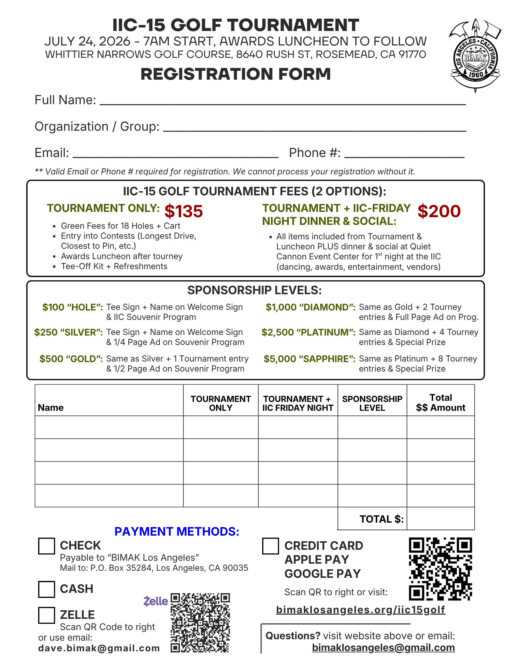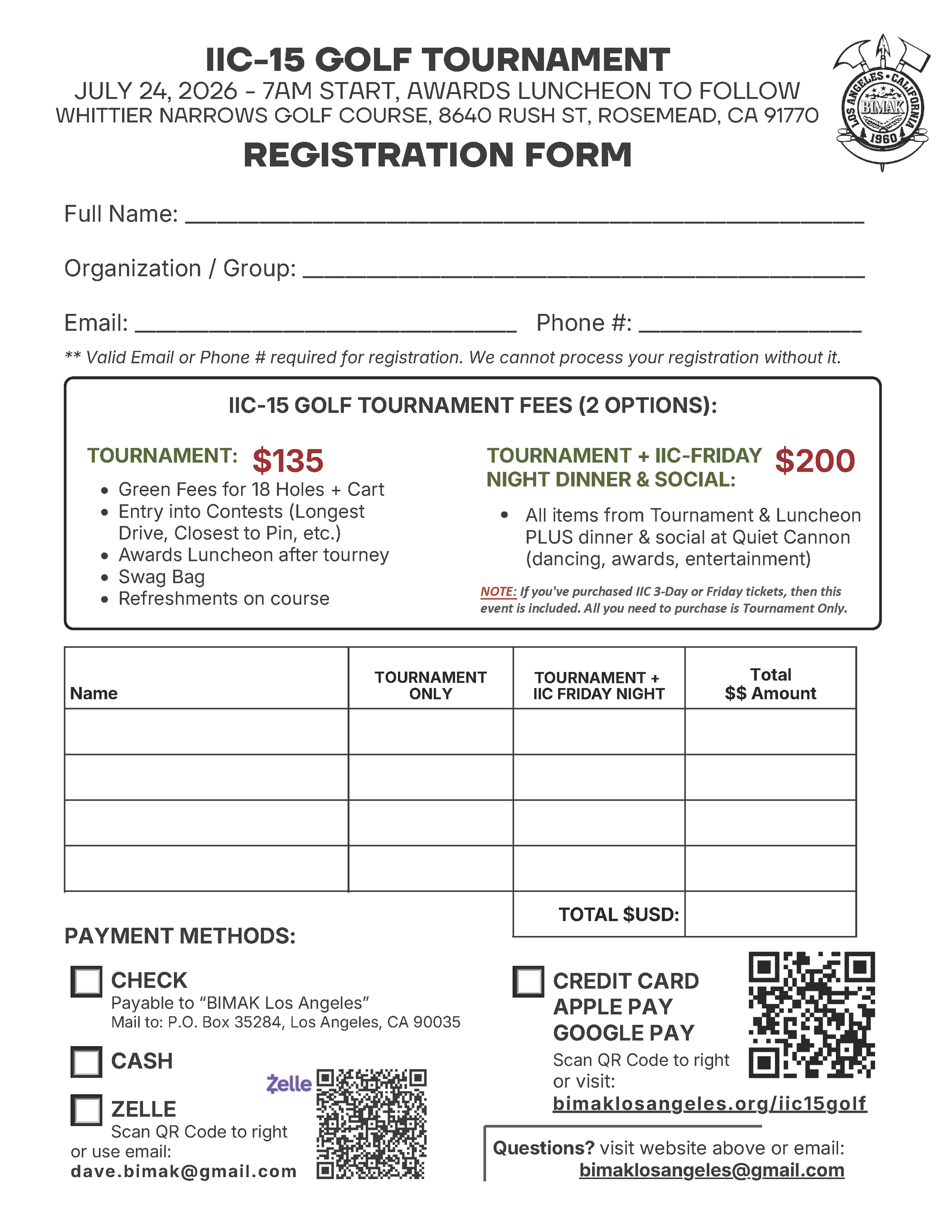 Please download and fill out the following form [IIC-15 GOLF TOURNAMENT FORM] and print, then include a check payable to: “BIMAK LOS ANGELES” with the appropriate amount and golfer name(s) in Memo section.