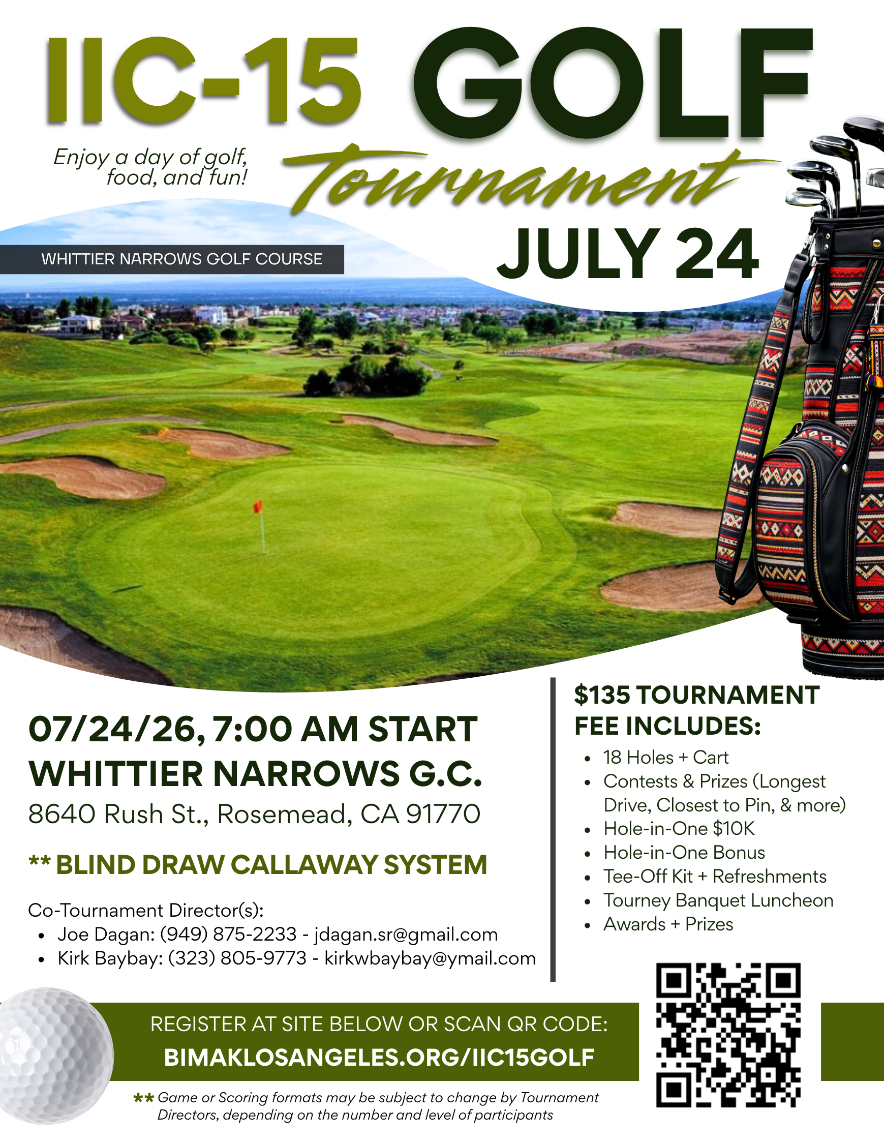 Email bimaklosangeles@gmail.com with subject line “IIC Golf Tournament for [your name]” and a short note about yourself and payment. One of our Registration Team members will contact you and make preparations.